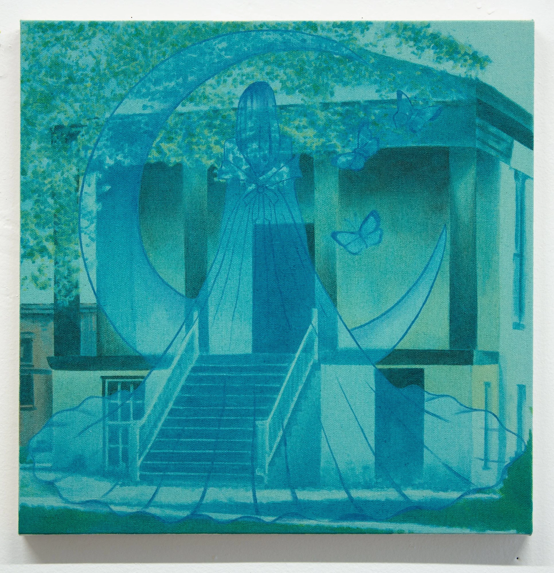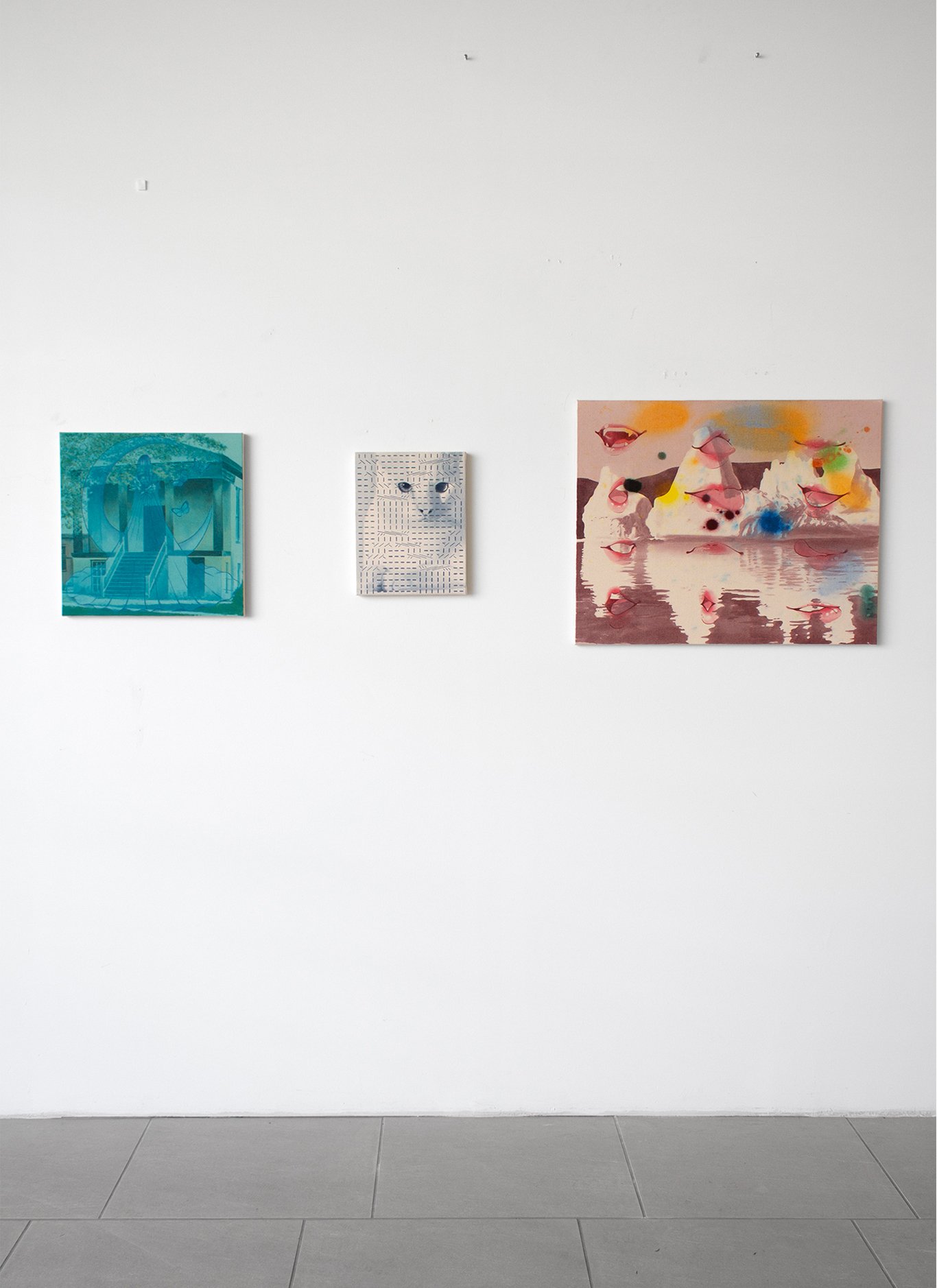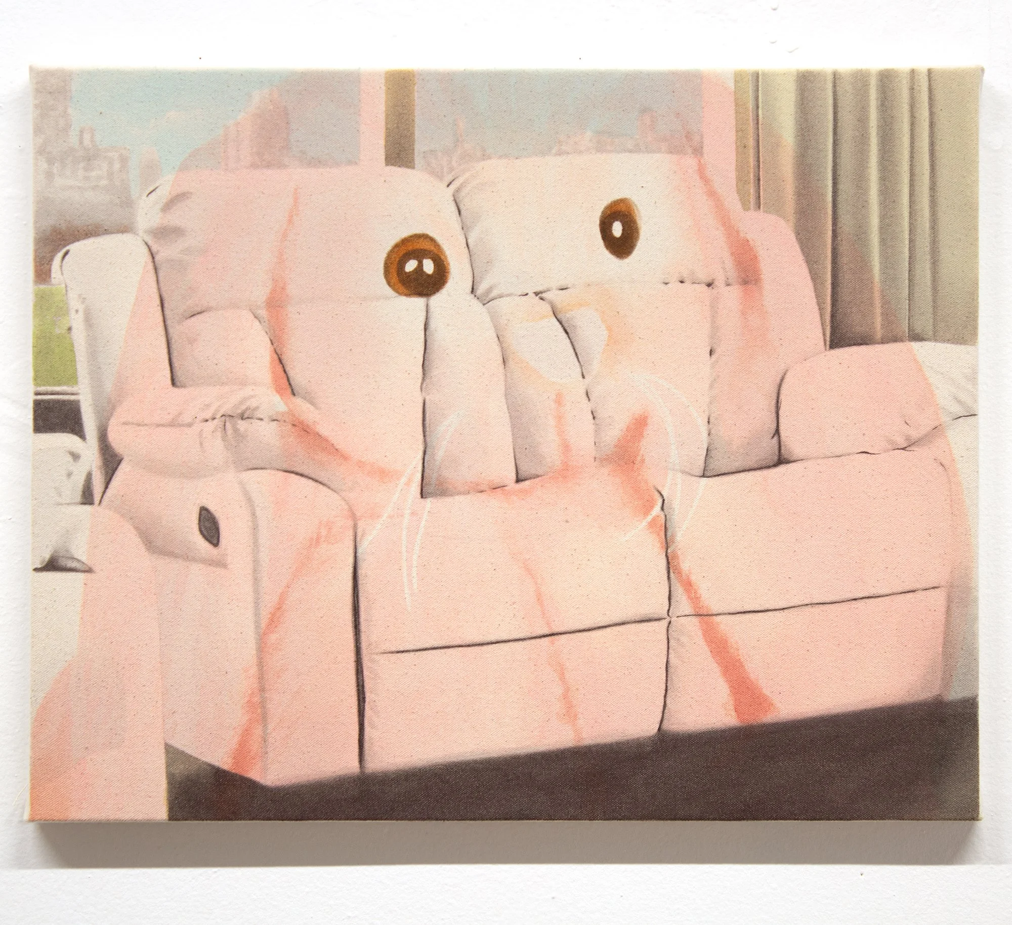 I think of these first and foremost as abstract paintings. Each starts with one image, and is resolved with a second, and sometimes a third. The reaction to the first layer dictates the final composition, so each painting finds its own visual logic intuitively. It’s a process of listening and responding.