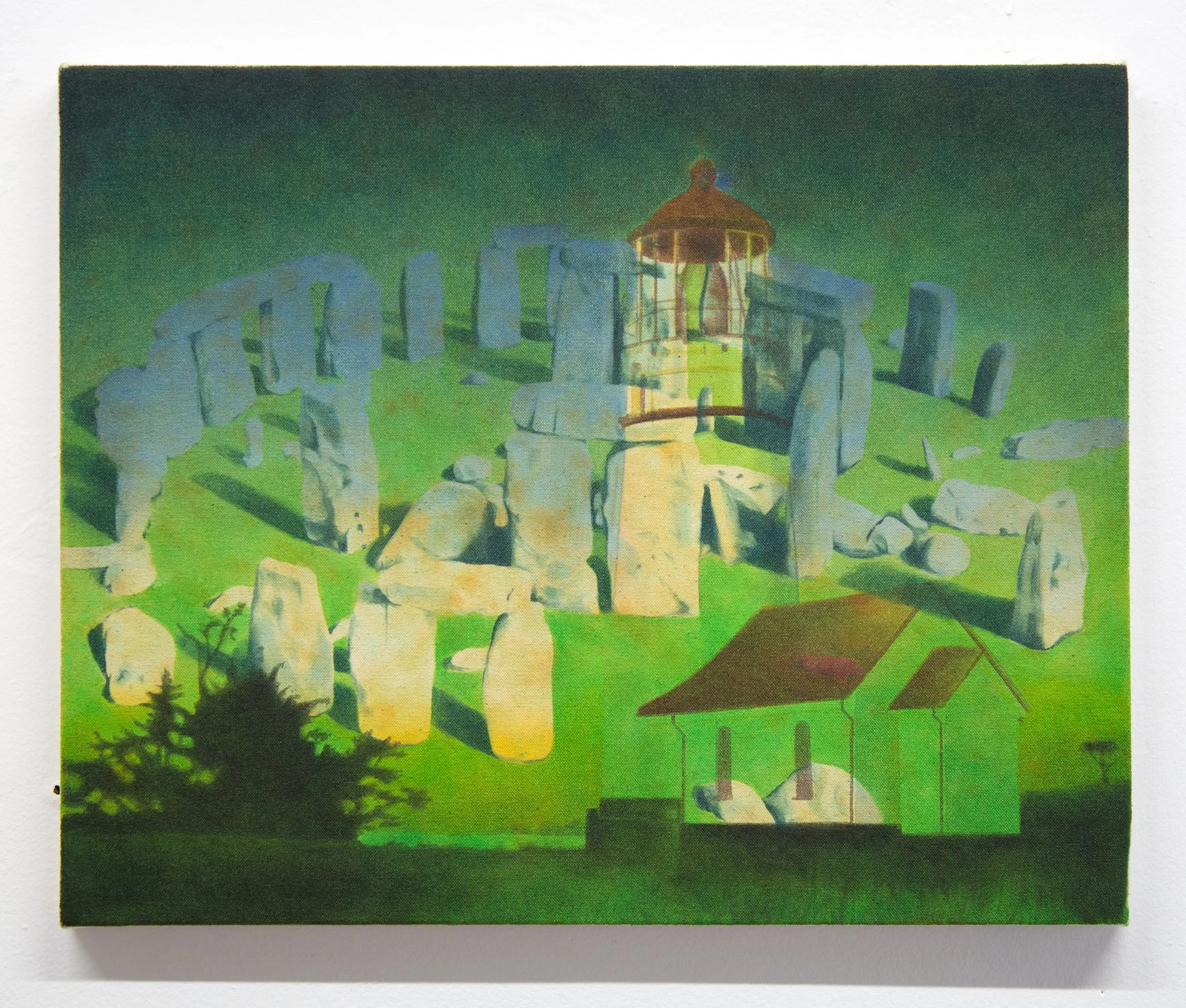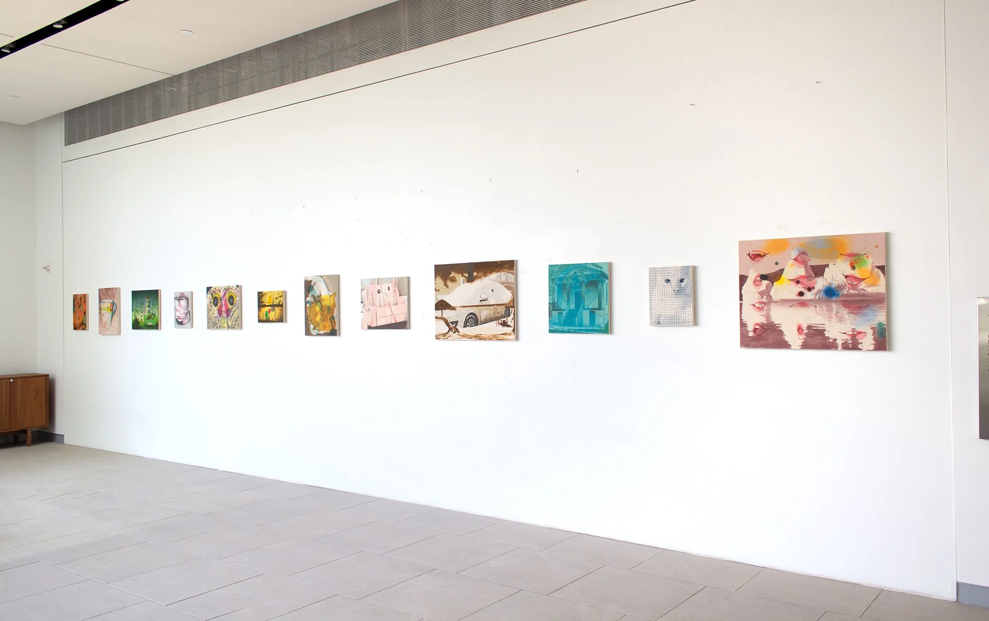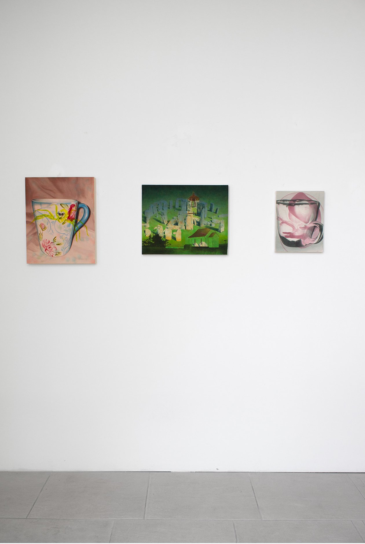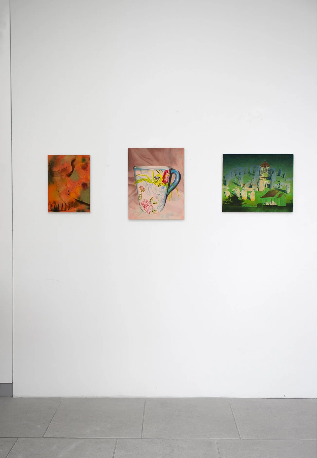 I think of these first and foremost as abstract paintings. Each starts with one image, and is resolved with a second, and sometimes a third. The reaction to the first layer dictates the final composition, so each painting finds its own visual logic intuitively. It’s a process of listening and responding.