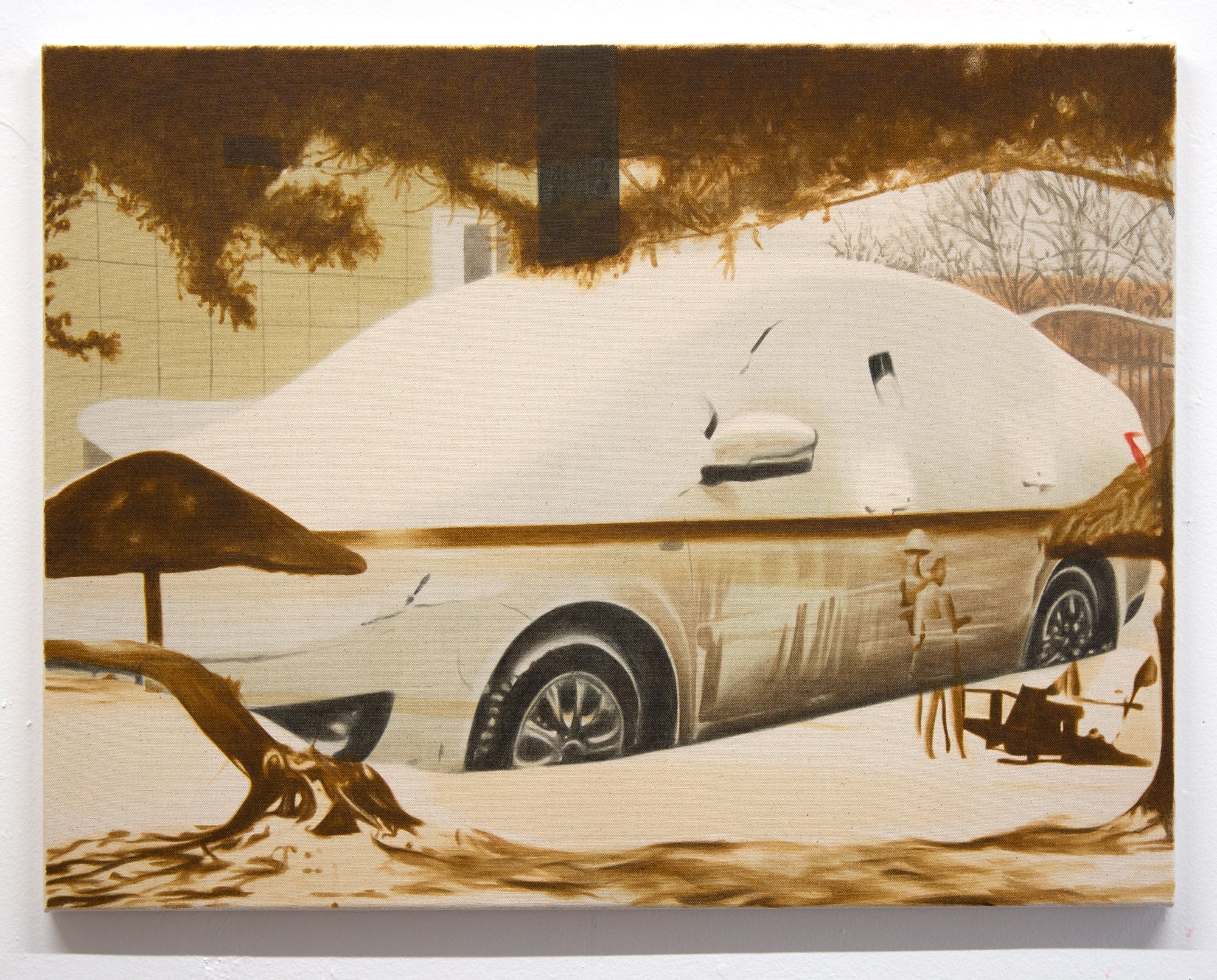 “Bare Feet On Cold Concrete” 2026, Acrylic on raw canvas, 22 x 29”
